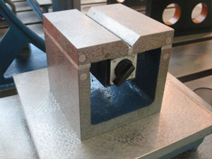 异型方箱主要用于零部件的平行度、垂直度等的检验和划线.异型方箱是用铸铁或钢材制成的具体6个工作面的空腔正方体,其中一个工作面上有V型槽.